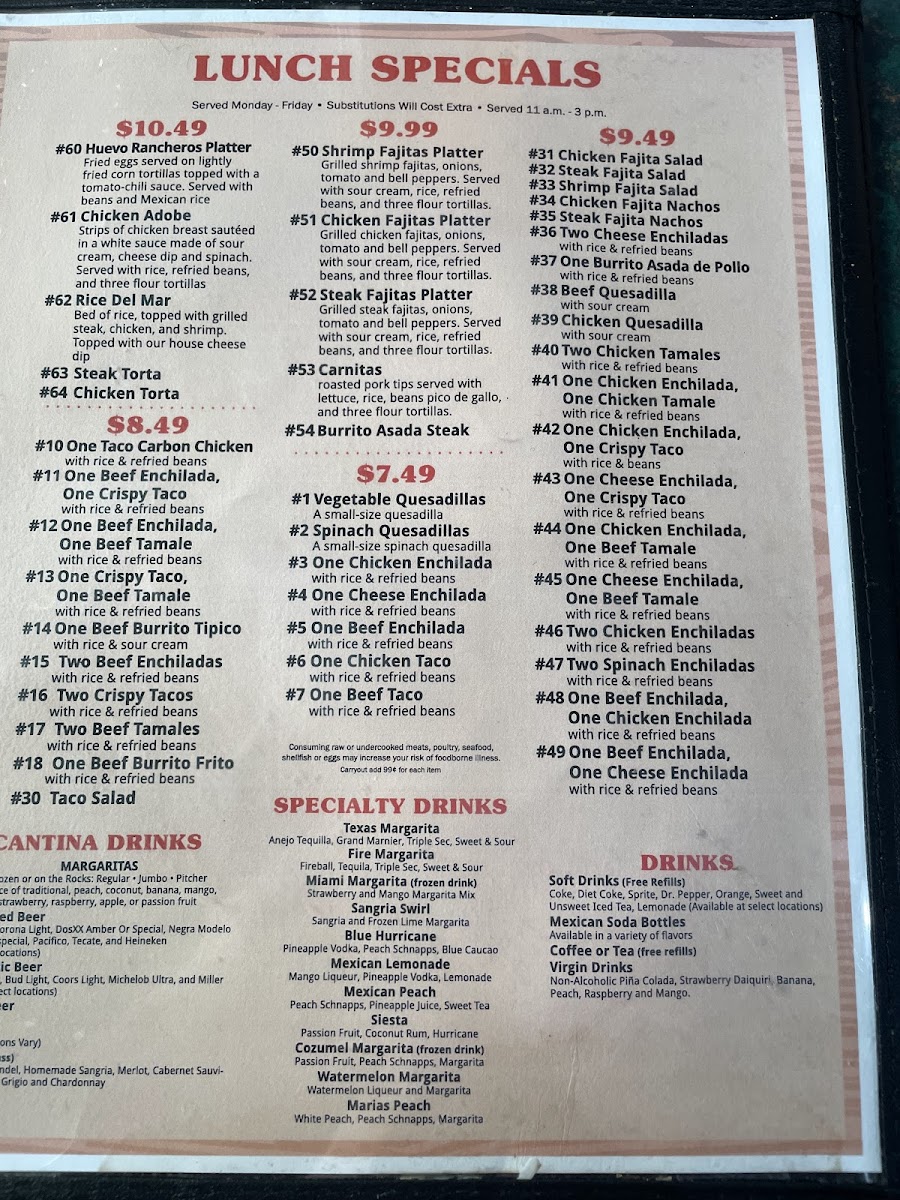 The menu supports a variety of dining moments—from leisurely visits capturing the casual vibe of a neighborhood favorite to mid-day breaks featuring affordable lunch specials. Drinks like the Sangria Swirl Margarita add a touch of festive charm without overwhelming the relaxed setting.